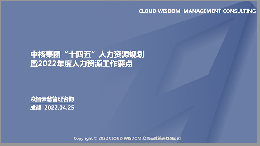 報告名稱:《中核集團“十四五”人力資源規劃暨2022年度人力資源工作要點(PPT 版35 頁)》下載:請點擊右側眾智云慧管理咨詢 下載通道:《中核集團十四五人力資源規劃暨 2022 年度工作要點 PPT 版35 頁》眾智云慧管理咨詢研究中心(CRC)提示,版權歸原作者所有,本資料僅供研究報告來源:中核集團、眾智云慧管...